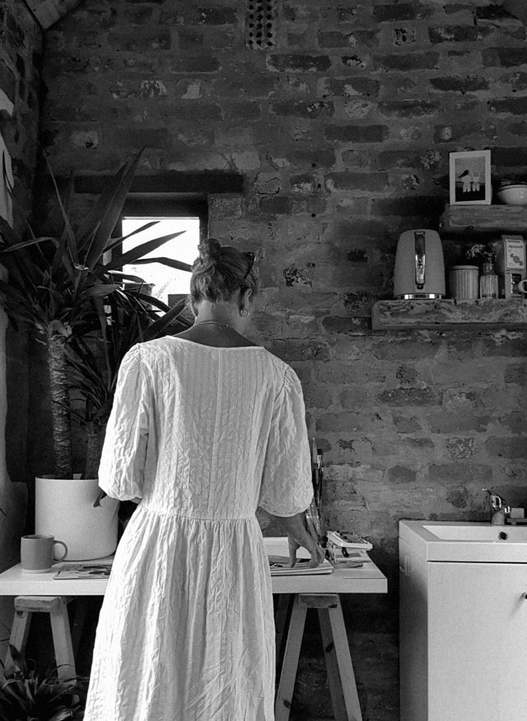 With a Dad who was a Graphic Designer and Grandparents who were painters, art surrounded her from a young age. She completed a Foundation Degree in Fine Art and Design at Falmouth University and then went on to gain a BA Hons Degree in Printed Textiles and Surface Pattern Design at Leeds Arts University.